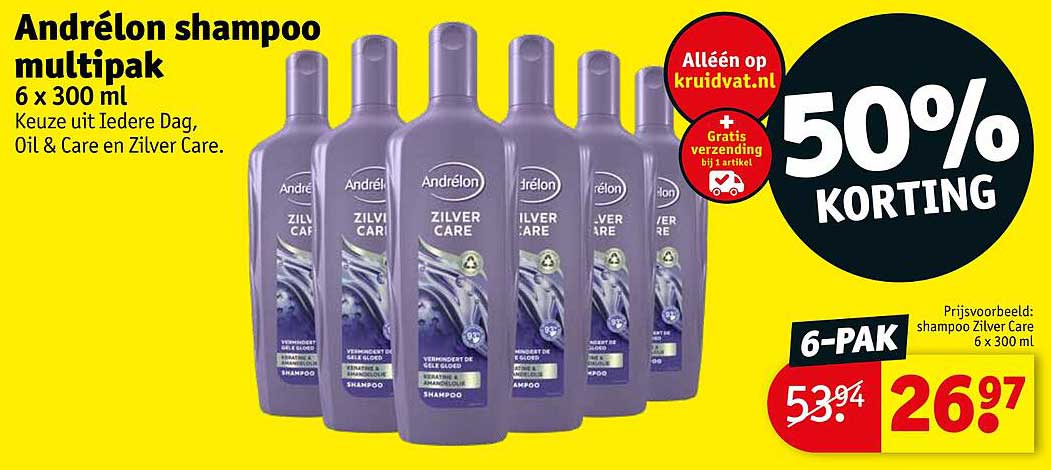 Ontdek de geweldige Andrélon Shampoo Multipak aanbieding in de nieuwste Kruidvat folder. Naast deze aanbieding vind je nog veel meer aantrekkelijke kortingen. Je kunt de Andrélon Shampoo Multipak eenvoudig online bestellen via de Kruidvat website of kopen in een winkel bij jou in de buurt.