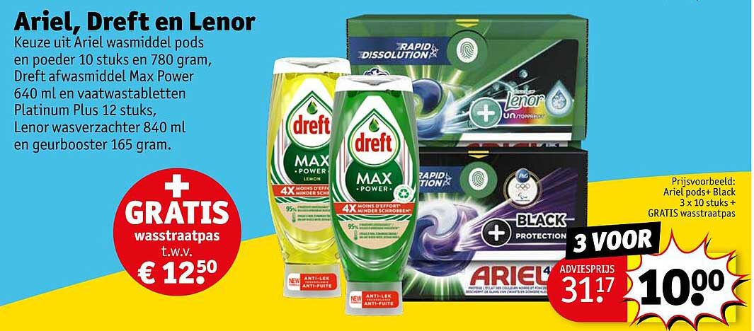 Ontdek de geweldige Ariel, Dreft En Lenor aanbieding in de nieuwste Kruidvat folder. Naast deze aanbieding vind je nog veel meer aantrekkelijke kortingen. Je kunt de Ariel, Dreft En Lenor eenvoudig online bestellen via de Kruidvat website of kopen in een winkel bij jou in de buurt.