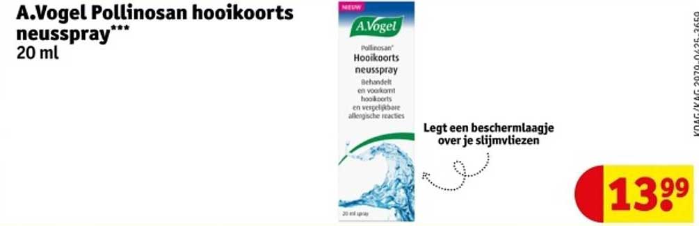 Het hooikoortsseizoen kan een uitdaging zijn voor veel mensen, vooral als je last hebt van verstopte neus en andere allergische reacties. Daarom is de A.Vogel Pollinosan hooikoorts neusspray een must-have in je medicijnkastje. Deze effectieve neusspray behandelt hooikoorts en voorkomt allergische reacties, waardoor je weer vrijer kunt ademen. Wat deze aanbieding zo bijzonder maakt, is de aantrekkelijke prijs die van 20 mei tot en met 25 mei geldig is.