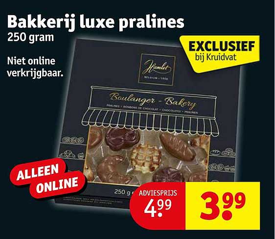 Bekijk de Bakkerij Luxe Pralines aanbieding bij Kruidvat! Deze fantastische aanbieding is nu beschikbaar in de nieuwste Kruidvat folder. Profiteer van deze kans en bespaar flink op je aankoop.