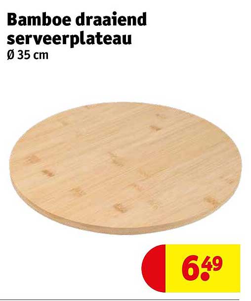 Bekijk nu de Bamboe draaiend serveerplateau Ø 35 cm aanbieding in de Kruidvat folder. Deze aanbieding is geldig van 07-04-2025 tot en met 13-04-2025.