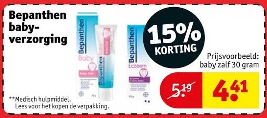 Bekijk de Bepanthen Babyverzorging: 15% Korting aanbieding bij Kruidvat! Deze fantastische aanbieding is nu beschikbaar in de nieuwste Kruidvat folder. Profiteer van deze kans en bespaar flink op je aankoop.