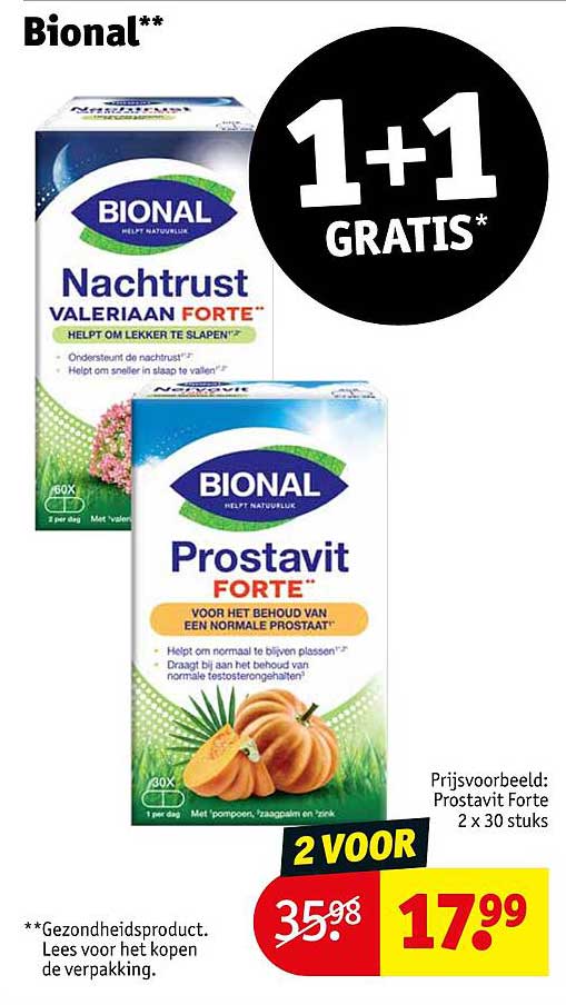 Bional Nachtrust Valeriaan Forte En Prostavit Forte aanbieding bij Kruidvat