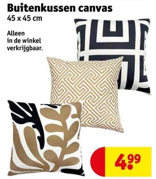 Ben je op zoek naar een stijlvolle aanvulling voor je buitenmeubel? Kijk dan niet verder, want hier vind je de aanbieding van Buitenkussens in de Kruidvat-folder! Met een afmeting van 45 x 45 cm zijn deze kussens perfect om jouw tuin, balkon of terras op te fleuren. Ze werken niet alleen als comfortabele steunen, maar brengen ook een speelse touch aan je buitenruimte!