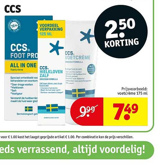 Bekijk de Ccs. Voetcrème aanbieding bij Kruidvat! Deze fantastische aanbieding is nu beschikbaar in de nieuwste Kruidvat folder. Profiteer van deze kans en bespaar flink op je aankoop.