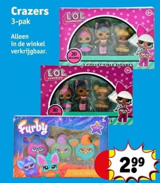 Heb je ooit gehoord van de leuke en speelse Crazers? Dit 3-pak is perfect voor liefhebbers van verrassingen en creativiteit! De Crazers zijn niet alleen schattige figuren, maar ook geweldige verzamelobjecten die je fantasie prikkelen. Deze aanbieding is van 12 tot en met 17 augustus 2025 geldig, dus grijp je kans voordat ze weg zijn!