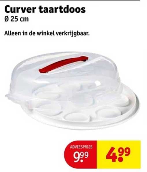 De Curver taartdoos is tijdelijk verkrijgbaar voor slechts €4,99, terwijl de adviesprijs €9,99 bedraagt. Dit betekent dat je maar liefst 50% bespaart! Dit is het ideale moment om deze handige taartdoos aan te schaffen. Met de extra besparing kun je nog een heerlijk bakrecept uitproberen of de ingrediënten voor je volgende meesterwerk kopen.