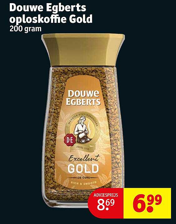 Ontdek de geweldige Douwe Egberts Oploskoffie Gold aanbieding in de nieuwste Kruidvat folder. Naast deze aanbieding vind je nog veel meer aantrekkelijke kortingen. Je kunt de Douwe Egberts Oploskoffie Gold eenvoudig online bestellen via de Kruidvat website of kopen in een winkel bij jou in de buurt.