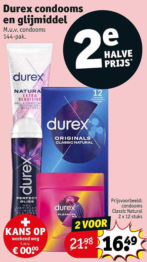 Bekijk de Durex Condooms En Glijmiddel aanbieding bij Kruidvat! Deze fantastische aanbieding is nu beschikbaar in de nieuwste Kruidvat folder. Profiteer van deze kans en bespaar flink op je aankoop.
