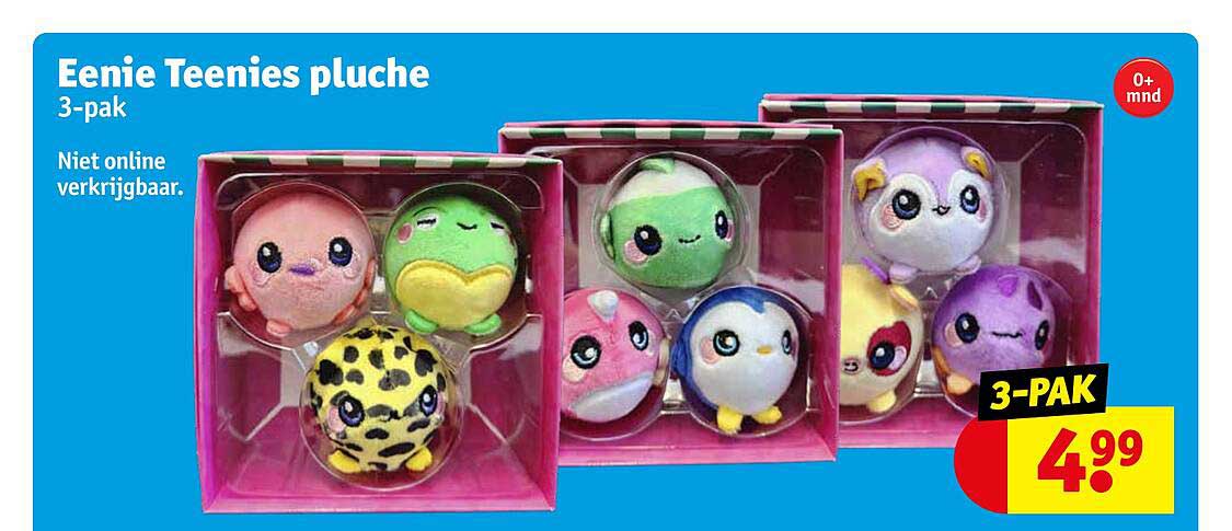 Bekijk nu de Eenie Teenies pluche 3-pak aanbieding in de Kruidvat folder. Deze aanbieding is geldig van 05-08-2024 tot en met 18-08-2024.