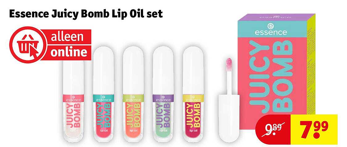 Bekijk de Essence Juicy Bomb Lip Oil Set aanbieding bij Kruidvat! Deze fantastische aanbieding is nu beschikbaar in de nieuwste Kruidvat folder. Profiteer van deze kans en bespaar flink op je aankoop.