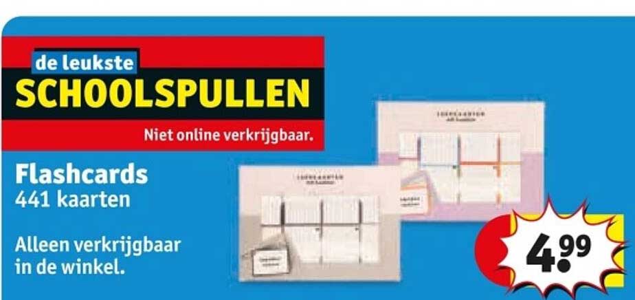 Heb je behoefte aan een effectieve manier om informatie vast te leggen en te onthouden? Dan zijn de flashcards uit de Kruidvat-folder precies wat je zoekt! Met 441 kaarten heb je een geweldige tool in handen om jouw studie- of werkproces te ondersteunen. Of je nu een student bent die zich voorbereidt op een examen, of iemand die nieuwe vaardigheden wil leren, deze flashcards bieden de perfecte oplossing. De aanbieding is geldig van 2025-06-24 tot en met 2025-07-06, dus zorg dat je deze kans niet mist!
