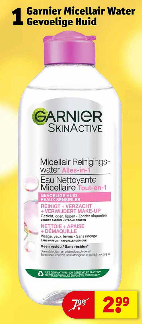 Ontdek de geweldige Garnier Micellair Water Gevoelige Huid aanbieding in de nieuwste Kruidvat folder. Naast deze aanbieding vind je nog veel meer aantrekkelijke kortingen. Je kunt de Garnier Micellair Water Gevoelige Huid eenvoudig online bestellen via de Kruidvat website of kopen in een winkel bij jou in de buurt.