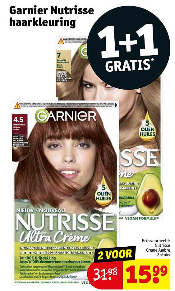 Ontdek de geweldige Garnier Nutrisse Haarkleurigheid aanbieding in de nieuwste Kruidvat folder. Naast deze aanbieding vind je nog veel meer aantrekkelijke kortingen. Je kunt de Garnier Nutrisse Haarkleurigheid eenvoudig online bestellen via de Kruidvat website of kopen in een winkel bij jou in de buurt.