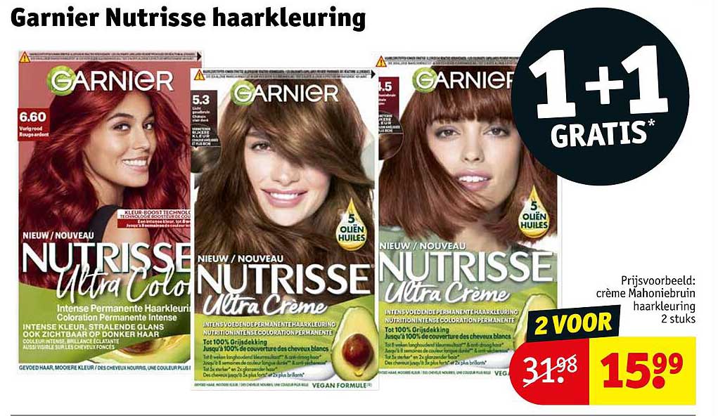 Bekijk de Garnier Nutrisse Haarkleuring aanbieding bij Kruidvat! Deze fantastische aanbieding is nu beschikbaar in de nieuwste Kruidvat folder. Profiteer van deze kans en bespaar flink op je aankoop.