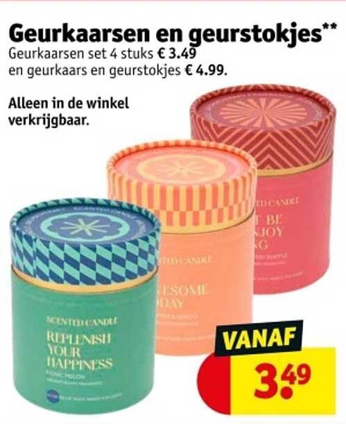 Mis deze geweldige kans niet en ontdek meer aanbiedingen door hier de Kruidvat-folder te bekijken. Naast de geurkaarsen en geurstokjes vindt u ook andere geweldige producten die uw leven nog aangenamer maken.