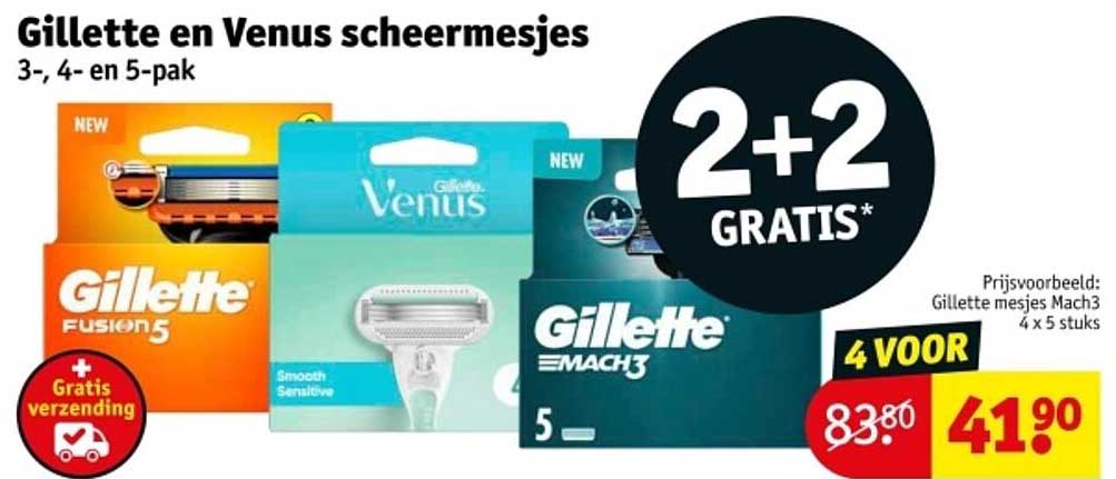 Ben je op zoek naar de beste scheermesjes voor een gladde huid? Op deze pagina vind je een onweerstaanbare aanbieding voor Gillette en Venus scheermesjes! Met de actie van 2+2 gratis krijg je de mogelijkheid om vier pakken scheermesjes te kopen voor een scherpe prijs. Dit is hét moment om je scheermesjes aan te vullen en te profiteren van deze fantastische korting.