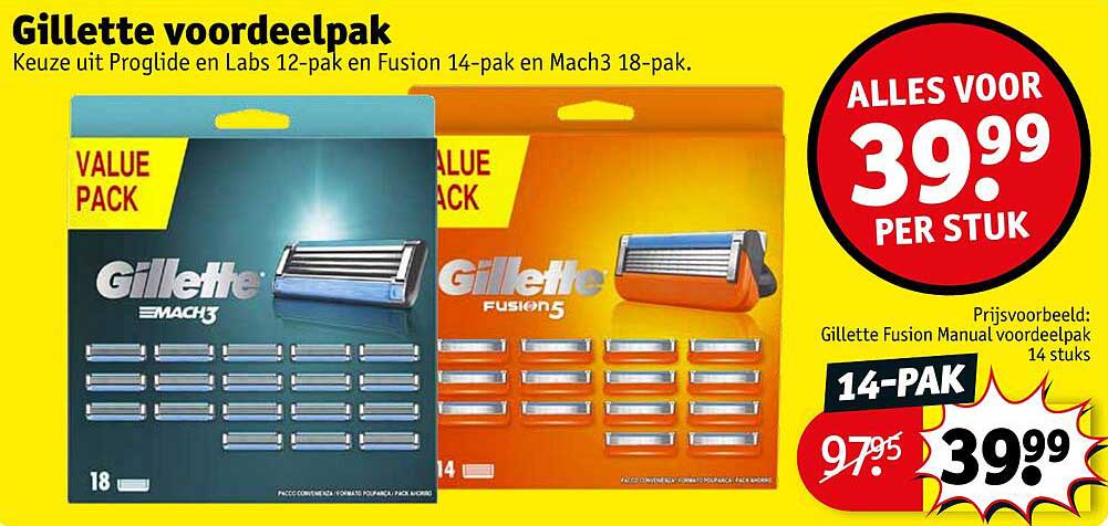 Bekijk de Gillette Voordeelpak aanbieding bij Kruidvat! Deze fantastische aanbieding is nu beschikbaar in de nieuwste Kruidvat folder. Profiteer van deze kans en bespaar flink op je aankoop.