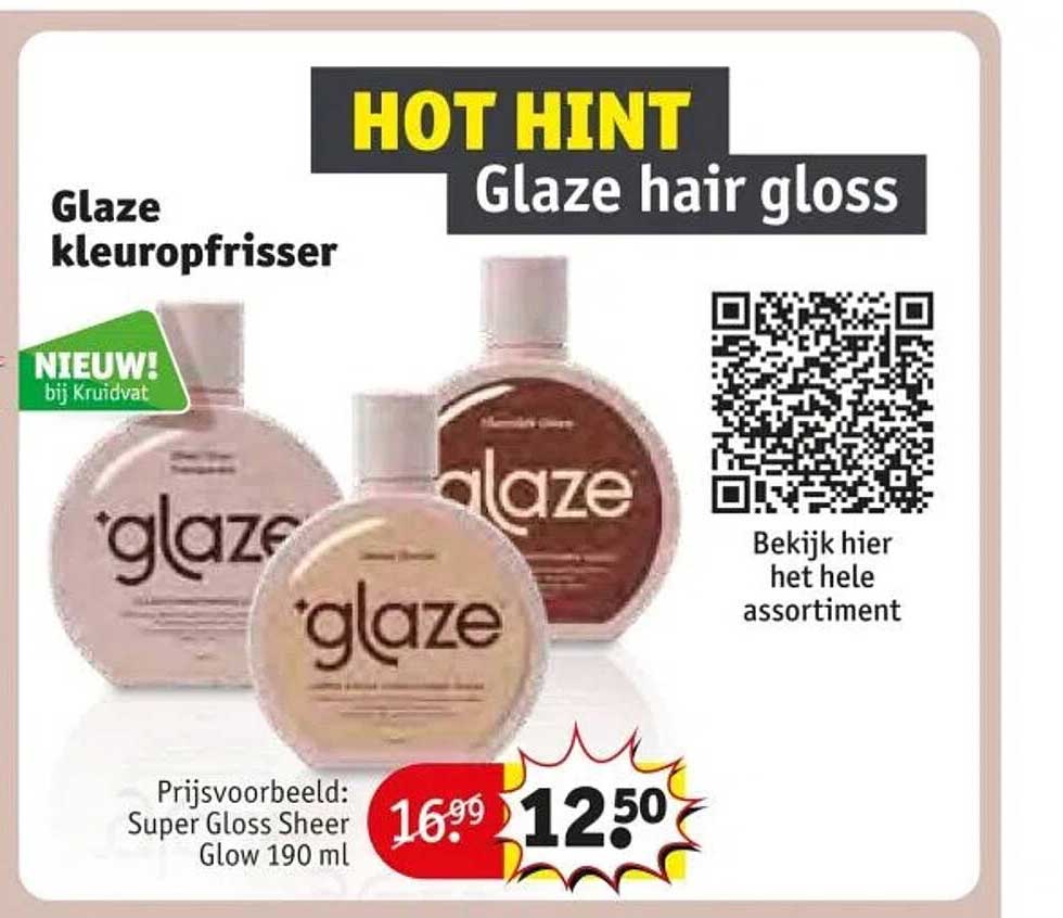 Ontdek de geweldige Glaze Kleuropfrisser aanbieding in de nieuwste Kruidvat folder. Naast deze aanbieding vind je nog veel meer aantrekkelijke kortingen. Je kunt de Glaze Kleuropfrisser eenvoudig online bestellen via de Kruidvat website of kopen in een winkel bij jou in de buurt.