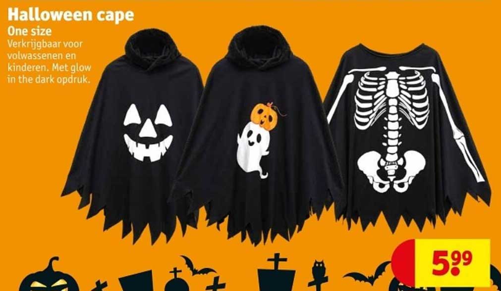 Bekijk nu de Halloween cape aanbieding in de Kruidvat folder. Deze aanbieding is geldig van 07-10-2025 tot en met 19-10-2025.