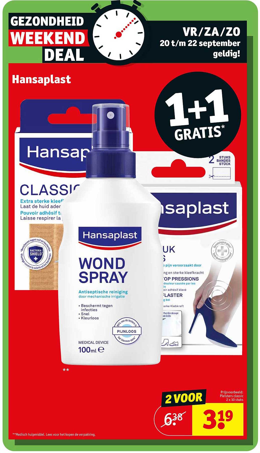 Bekijk nu de Hansaplast WOND SPRAY aanbieding in de Kruidvat folder. Deze aanbieding is geldig van 16-09-2024 tot en met 22-09-2024.