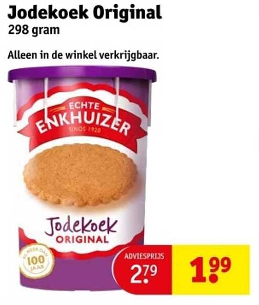 Met een adviesprijs van €2,79 profiteer je nu van een flinke korting. Voor slechts €1,99 heb je deze heerlijke Jodekoek Original in huis. Dit maakt het niet alleen een geweldige deal, maar ook een kans om je voorraad aan te vullen zonder je budget te harden. Mis deze kans niet!