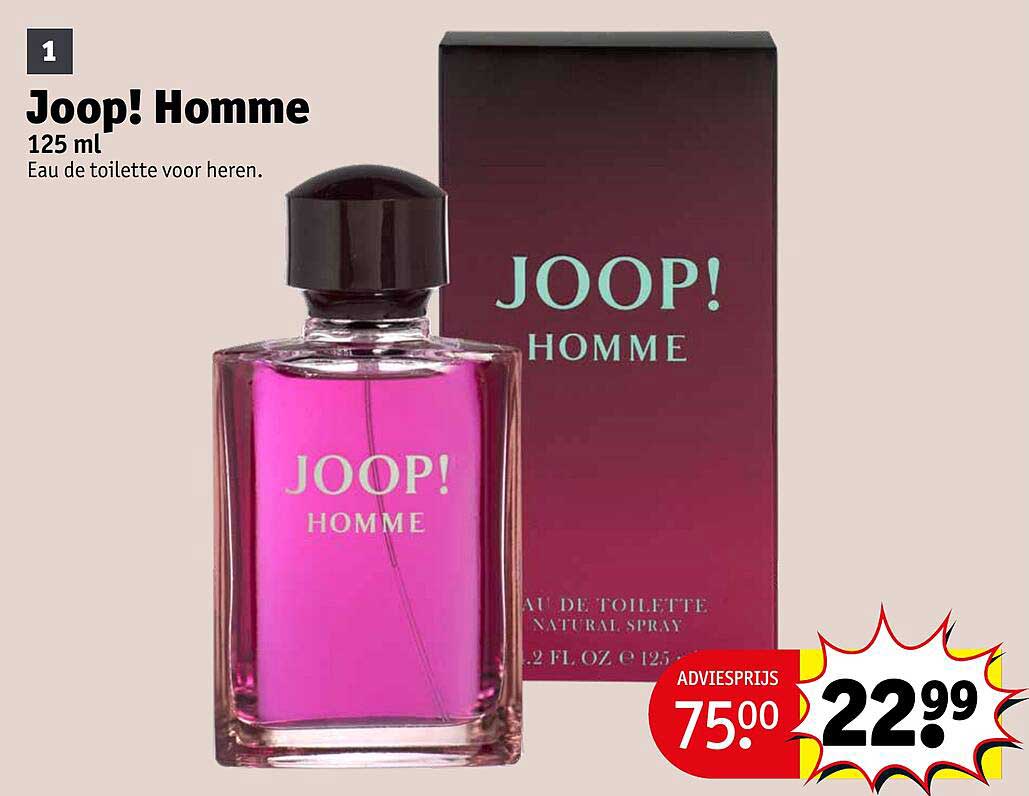 Ontdek de geweldige Joop! Homme aanbieding in de nieuwste Kruidvat folder. Naast deze aanbieding vind je nog veel meer aantrekkelijke kortingen. Je kunt de Joop! Homme eenvoudig online bestellen via de Kruidvat website of kopen in een winkel bij jou in de buurt.