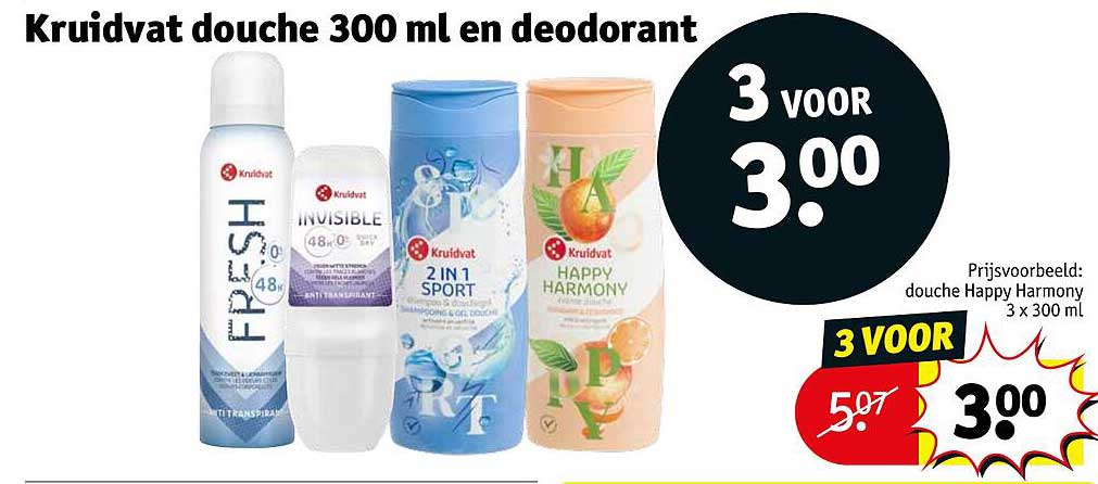 Kruidvat Douche 300 Ml En Deodorant aanbieding bij Kruidvat