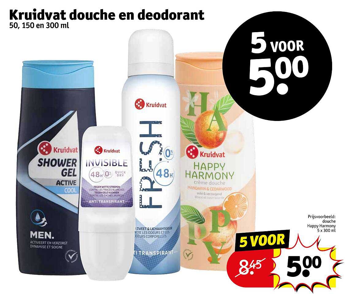 Ontdek de geweldige Kruidvat Douche En Deodorant aanbieding in de nieuwste Kruidvat folder. Naast deze aanbieding vind je nog veel meer aantrekkelijke kortingen. Je kunt de Kruidvat Douche En Deodorant eenvoudig online bestellen via de Kruidvat website of kopen in een winkel bij jou in de buurt.