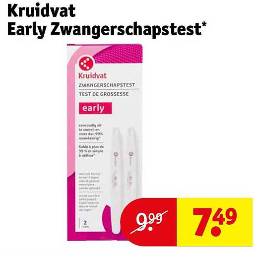 Bekijk de Kruidvat Early Zwangerschapstest* aanbieding bij Kruidvat! Deze fantastische aanbieding is nu beschikbaar in de nieuwste Kruidvat folder. Profiteer van deze kans en bespaar flink op je aankoop.