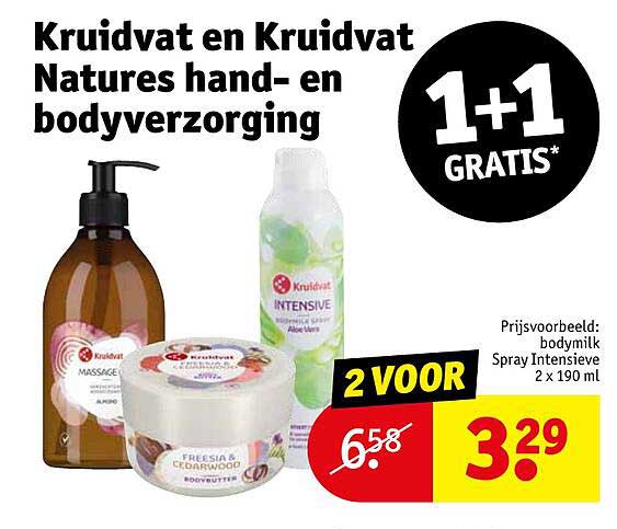 Bekijk nu de Kruidvat en Kruidvat Natures hand- en bodyverzorging aanbieding in de Kruidvat folder. Deze aanbieding is geldig van 12-08-2024 tot en met 18-08-2024.