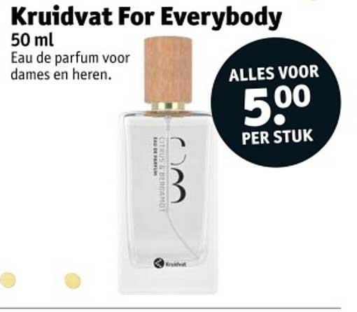 Ben je op zoek naar een veelzijdige geur die zowel dames als heren aanspreekt? Dan is de Kruidvat For Everybody eau de parfum een ideale keuze. Met een aantrekkelijke prijs van slechts €5,00 per stuk, biedt deze geur een uitstekende mogelijkheid om jezelf of anderen te verwennen. De aanbieding is geldig van 19 augustus tot en met 24 augustus 2025, dus zorg ervoor dat je dit moment niet mist!