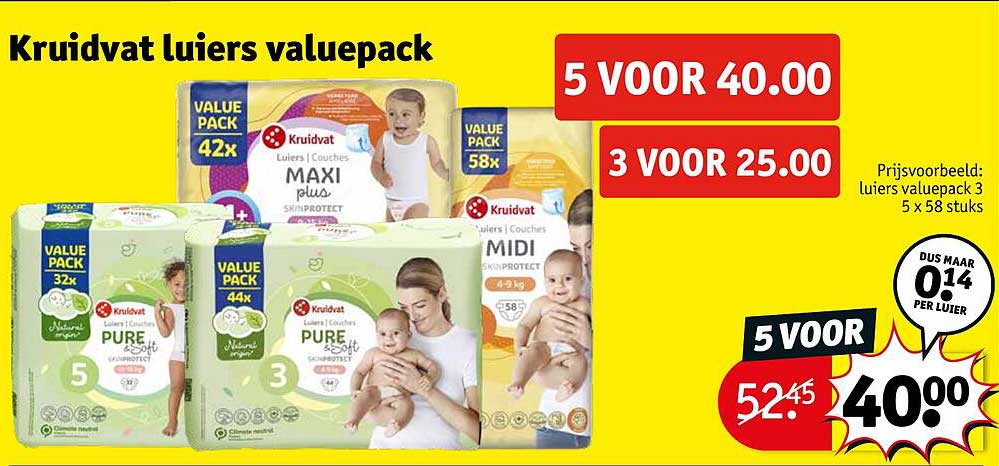 Bekijk de Kruidvat Luiers Valuepack aanbieding bij Kruidvat! Deze fantastische aanbieding is nu beschikbaar in de nieuwste Kruidvat folder. Profiteer van deze kans en bespaar flink op je aankoop.