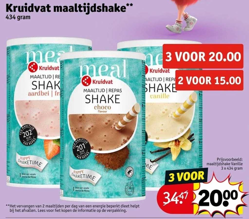 Bekijk nu de Kruidvat maaltijdshake 434 gram aanbieding in de Kruidvat folder. Deze aanbieding is geldig van 19-08-2025 tot en met 24-08-2025.