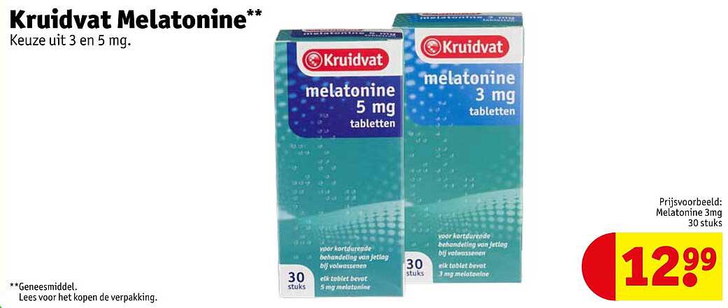Ontdek de geweldige Kruidvat Melatonine aanbieding in de nieuwste Kruidvat folder. Naast deze aanbieding vind je nog veel meer aantrekkelijke kortingen. Je kunt de Kruidvat Melatonine eenvoudig online bestellen via de Kruidvat website of kopen in een winkel bij jou in de buurt.