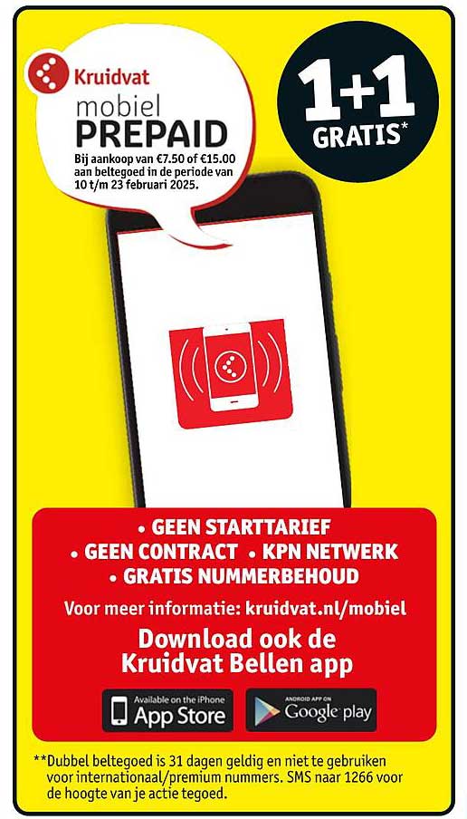 Ontdek de Kruidvat Mobiel Prepaid 1+1 Gratis*
