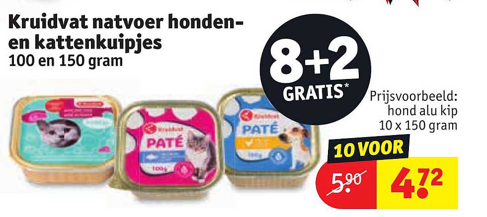 Bekijk de Kruidvat Natvoer Honden- En Kattenkuipjes aanbieding bij Kruidvat! Deze fantastische aanbieding is nu beschikbaar in de nieuwste Kruidvat folder. Profiteer van deze kans en bespaar flink op je aankoop.