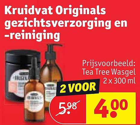 Bekijk nu de Kruidvat Originals gezichtsverzorging en -reiniging aanbieding in de Kruidvat folder. Deze aanbieding is geldig van 16-12-2024 tot en met 29-12-2024.