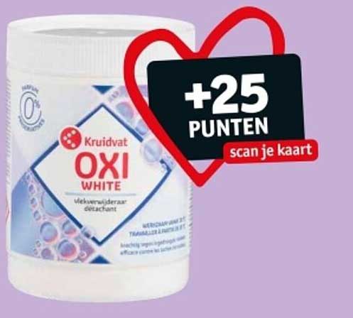 Bekijk nu de Kruidvat OXI WHITE Vlekkenverwijderaar aanbieding in de Kruidvat folder. Deze aanbieding is geldig van 17-06-2025 tot en met 22-06-2025.