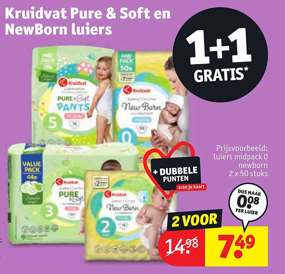 Kruidvat Pure & Soft En Newborn Luiers aanbieding bij Kruidvat