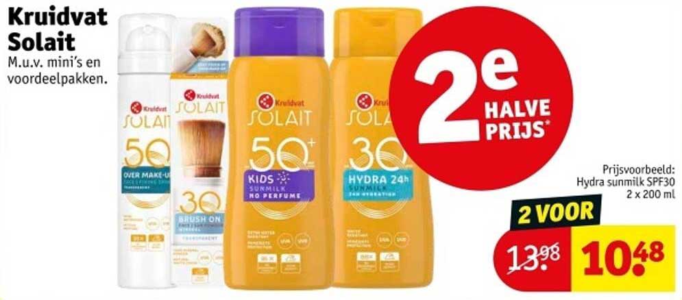 Bekijk nu de Kruidvat Solait 2 voor 10,48 aanbieding in de Kruidvat folder. Deze aanbieding is geldig van 20-05-2025 tot en met 25-05-2025.