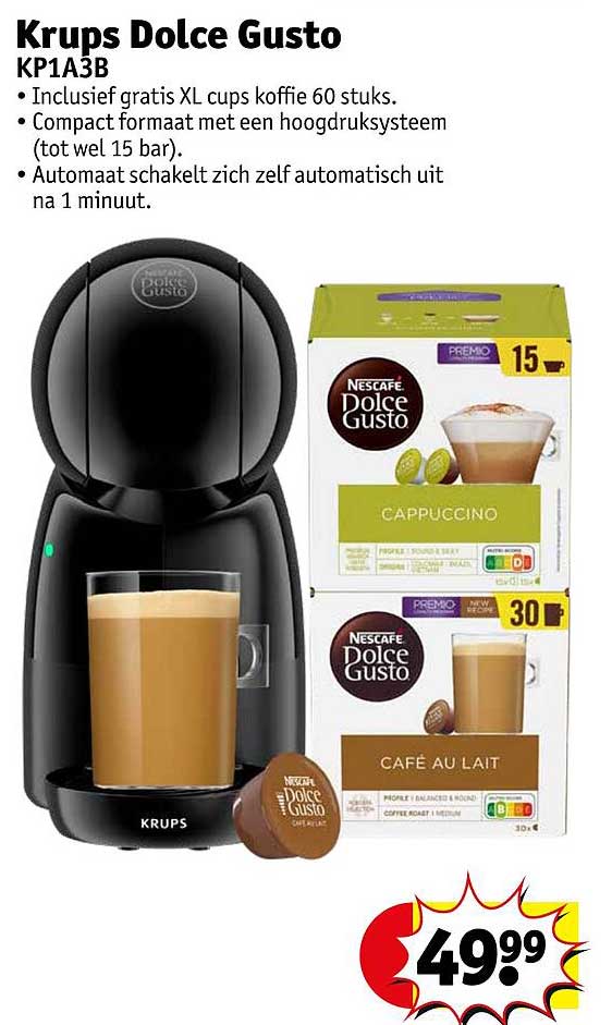 Ontdek de geweldige Krups Dolce Gusto aanbieding in de nieuwste Kruidvat folder. Naast deze aanbieding vind je nog veel meer aantrekkelijke kortingen. Je kunt de Krups Dolce Gusto eenvoudig online bestellen via de Kruidvat website of kopen in een winkel bij jou in de buurt.