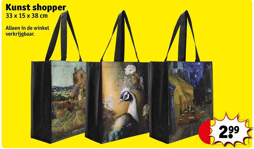 Bekijk de Kunst Shopper aanbieding bij Kruidvat! Deze fantastische aanbieding is nu beschikbaar in de nieuwste Kruidvat folder. Profiteer van deze kans en bespaar flink op je aankoop.