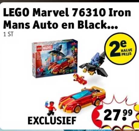 Bekijk nu de LEGO Marvel 76310 Iron Mans Auto en Black... aanbieding in de Kruidvat folder. Deze aanbieding is geldig van 15-09-2025 tot en met 31-12-2025.
