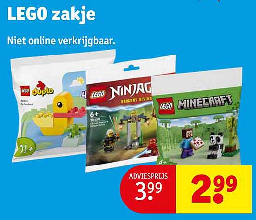 Bekijk de Lego Zakje aanbieding bij Kruidvat! Deze fantastische aanbieding is nu beschikbaar in de nieuwste Kruidvat folder. Profiteer van deze kans en bespaar flink op je aankoop.