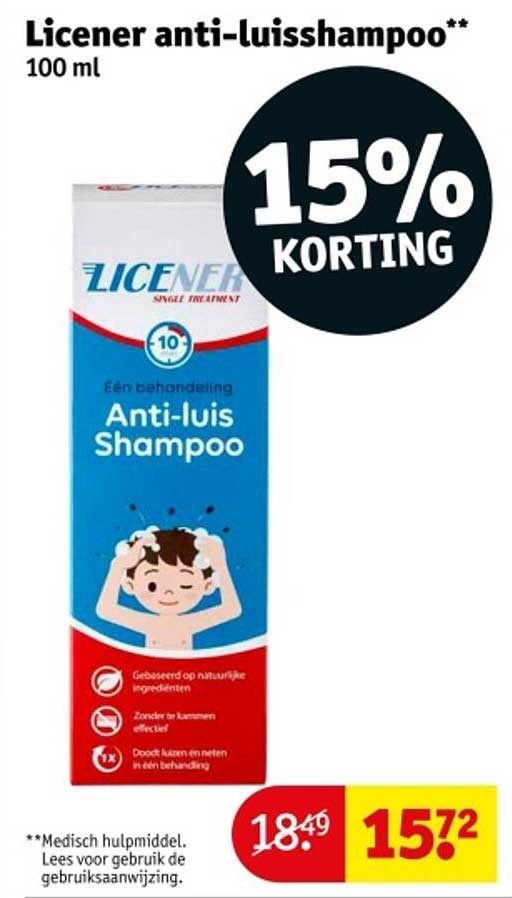 Ben je op zoek naar een effectieve oplossing tegen luizen? Dan is deze aanbieding iets voor jou! Licener anti-luisshampoo biedt een betrouwbare behandelmethode en is gebaseerd op natuurlijke ingrediënten. Deze shampoo is perfect voor gezinnen die op een effectieve manier van luizen af willen komen. Met een korting van 15% is dit het ideale moment om het uit te proberen!