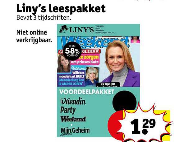 Bekijk nu de Liny’s leespakket aanbieding in de Kruidvat folder. Deze aanbieding is geldig van 30-09-2024 tot en met 06-10-2024.