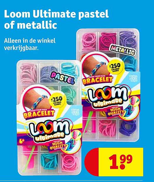 Bekijk de Loom Ultimate Pastel Of Metallic aanbieding bij Kruidvat! Deze fantastische aanbieding is nu beschikbaar in de nieuwste Kruidvat folder. Profiteer van deze kans en bespaar flink op je aankoop.