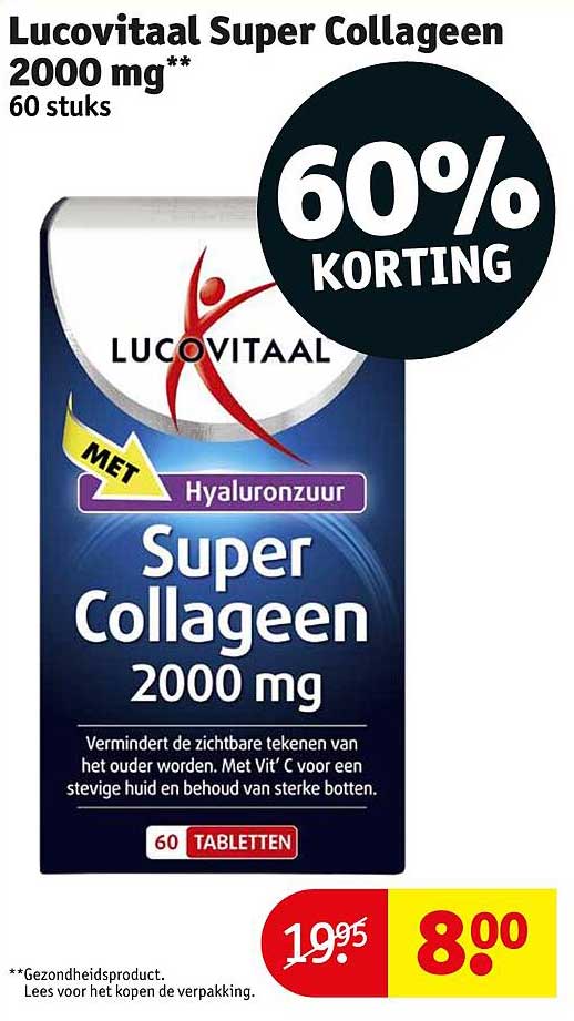 Ontdek de geweldige Lucovitaal Super Collageen 2000 Mg** aanbieding in de nieuwste Kruidvat folder. Naast deze aanbieding vind je nog veel meer aantrekkelijke kortingen. Je kunt de Lucovitaal Super Collageen 2000 Mg** eenvoudig online bestellen via de Kruidvat website of kopen in een winkel bij jou in de buurt.