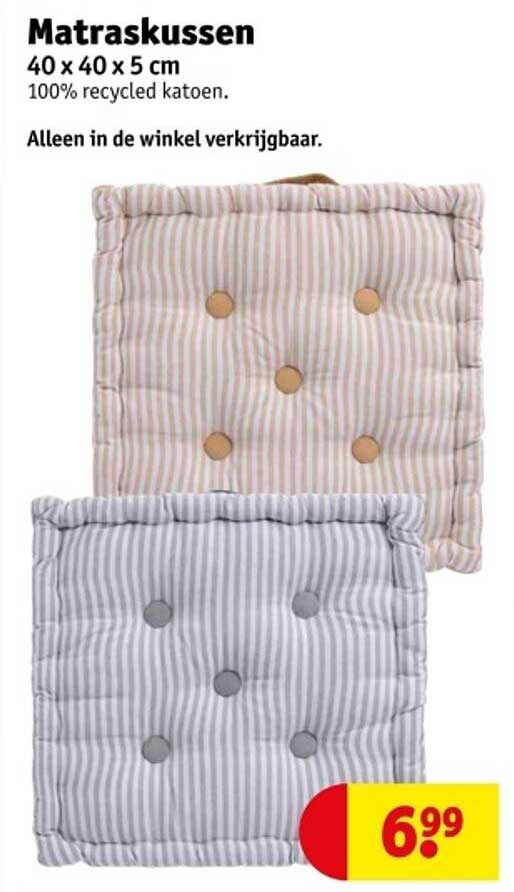 De matraskussens zijn nu beschikbaar voor slechts €6,99. Dit is een fantastische deal, gezien de kwaliteit en duurzaamheid die je ervoor terugkrijgt. Vergelijk dit met de gemiddelde prijzen van soortgelijke producten en je zult zien dat deze aanbieding een echte kans is om te besparen!